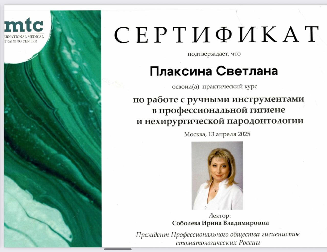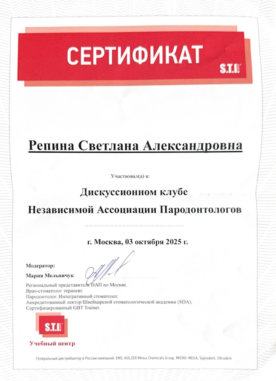 Образование:Специалист по лечению десен лазером и аппаратом Vector.
